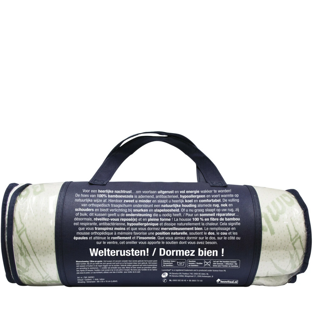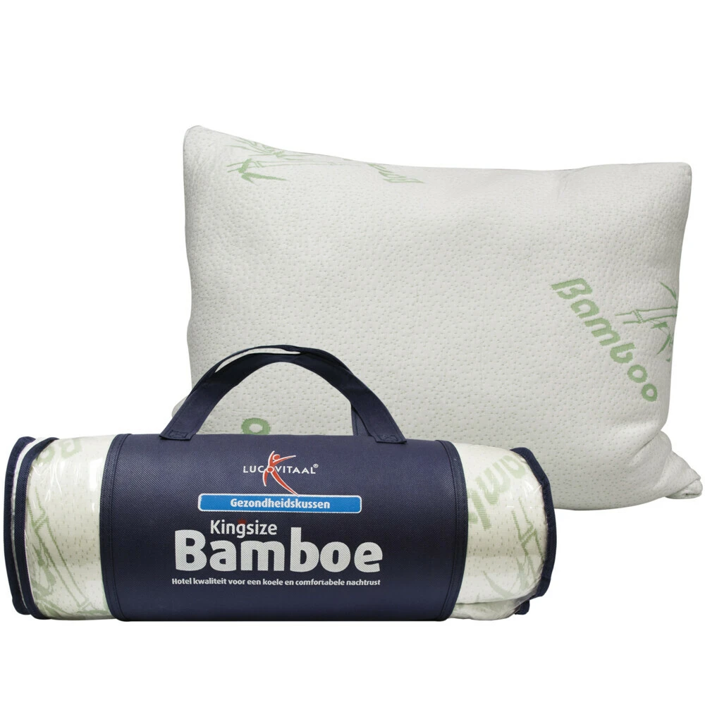 Lucovitaal Kingsize Bamboe HoofdkussenKies voor een heerlijke nachtrust dit fijne kussen van Lucovitaal. Met dit geweldige Kingsize Bamboe Hoofdkussen van Lucovitaal worden je spieren tijdens het slapen ontlast en kun je rug-, nek- en schouderklachten voorkomen. Door de drukverlagende vulling (orthopedisch traagschuim) biedt dit ergonomische kussen je lichaam en hoofd de rust en ondersteuning die het nodig heeft tijdens het slapen en doorslapen. Of je nu op je buik, rug of zij ligt, je ligt alti