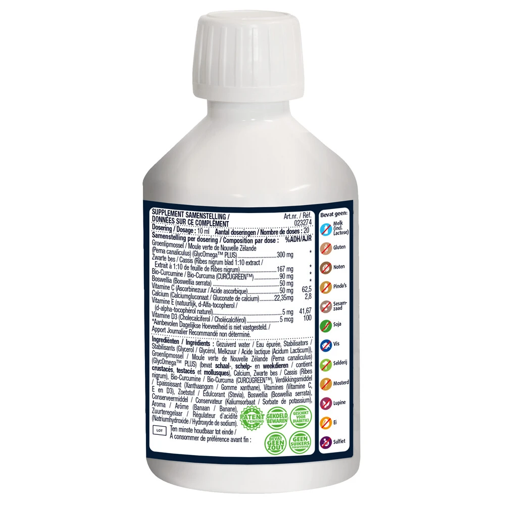 Lucovitaal Groenlipmossel VloeibaarGroenlipmossel Vloeibaar van Lucovitaal bevat onder andere pure en zuivere Nieuw Zeelandse Groenlipmossel, Boswellia en Zwarte bes.Zwarte bes heeft een verzorgende invloed op spieren en gewrichtenCurcumine heeft een beschermende invloed op weefsels en cellen en bevordert het afweersysteem Vitamine C ondersteunt het immuunsysteem De toegevoegde Curcumine bevordert het natuurlijk afweersysteem en heeft een beschermende invloed op gezonde weefsels en cellen. Vit
